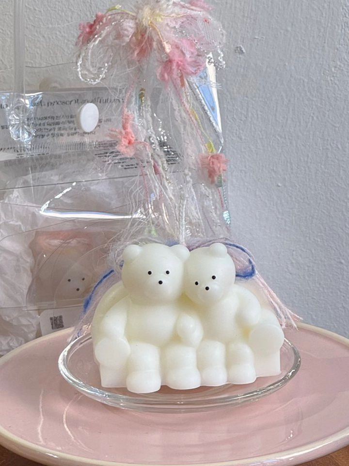 서로 기대어 앉은 귀여운 곰돌이 커플 향초 "-)