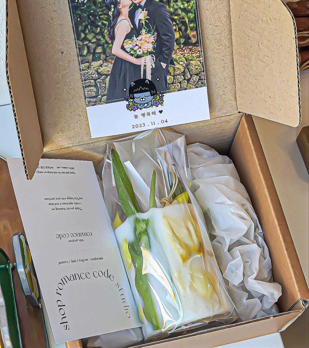 매장 방문하셔서 저에게 꽃 전달해주시고 향기 선택해주세요.